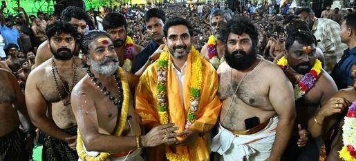 మంగళగిరి శ్రీలక్ష్మీ నరసింహస్వామి వారి ఆలయ ప్రాంగణంలో అయ్యప్ప భక్తుల ఆధ్వర్యంలో నిర్వహించిన అయ్యప్ప స్వామి మహా పడిపూజ కార్యక్రమంలో పాల్గొన్న ఆంధ్ర ప్రదేశ్ IT శాఖా మంత్రి వర్యులు శ్రీ నారా లోకేష్ గారు . మహా పడిపూజ కార్యక్రమాన్ని వీక్షించారు. స్వామి వారిని దర్శించుకున్నారు. ఈ సందర్భంగా శ్రీ మధు నంబూద్రి గురుస్వామి ఆధ్వర్యంలో ప్రత్యేక పూజా కార్యక్రమాలు, అభిషేకాలు నిర్వహించారు.